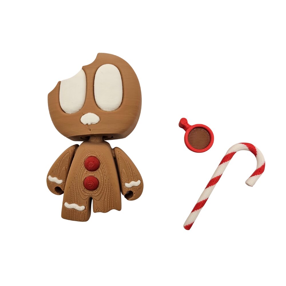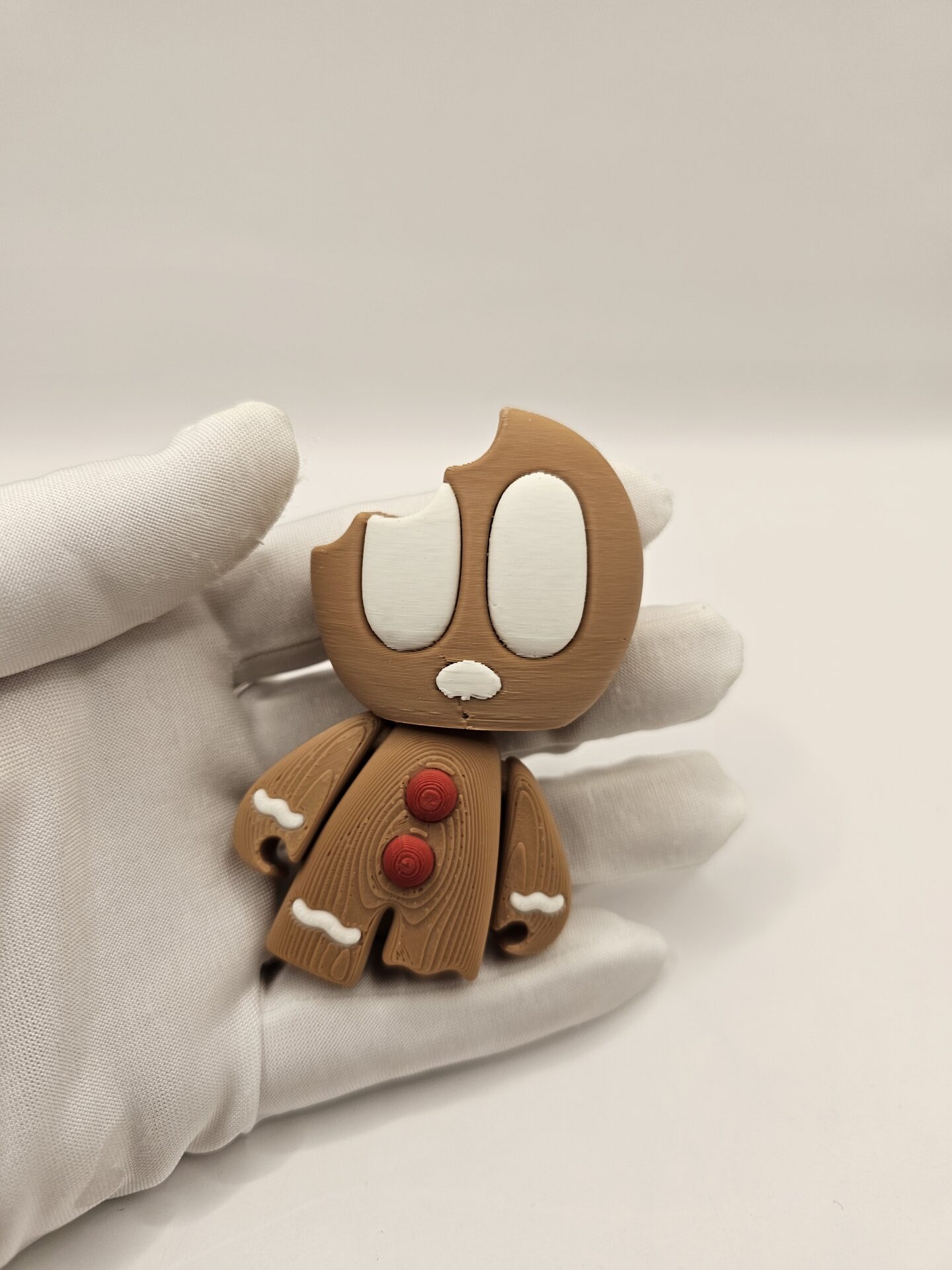 Dzięki zaawansowanej technologii druku 3D możliwe było odwzorowanie tekstury przypominającej prawdziwe piernikowe ciastko. Brązowe ciało z widocznymi liniami, białe akcenty jak lukier na rękach i nogach oraz czerwone guziki tworzą autentyczny wygląd gingerbread mana w stylu Blob.