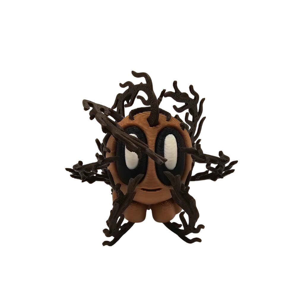 Biegacz ma ciepły, brązowy kolor. Struktura przypomina splątane gałązki i liście. Duże czarno-białe oczy nadają postaci kawaii charakter. Całość jest zwarta i miniaturowa.