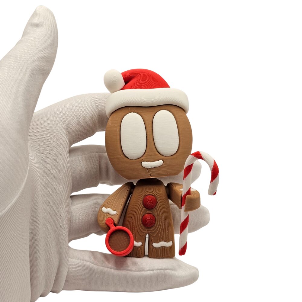 Wykonana w technologii druku 3D z wysokiej jakości tworzywa sztucznego figurka zachwyca precyzyjnym odwzorowaniem faktury ciasteczka, lukrowanych ozdób i drobnych detali, takich jak guziki, wzory i charakterystyczne pęknięcia. Ciepła kolorystyka w tonacjach brązu, bieli i czerwieni nadaje figurce przyjazny, zimowy charakter, który doskonale pasuje do sezonowych dekoracji i nietypowych kolekcji świątecznych.