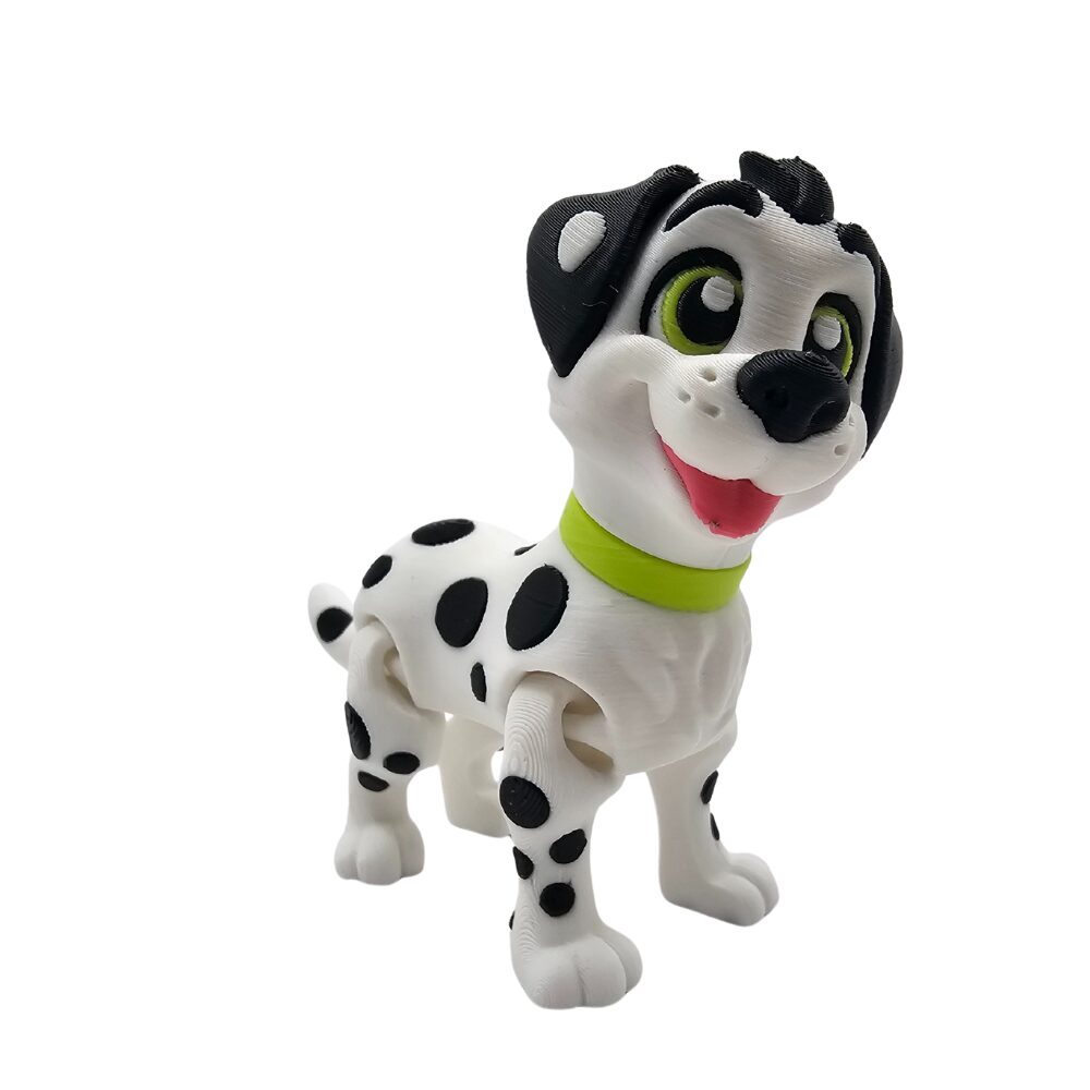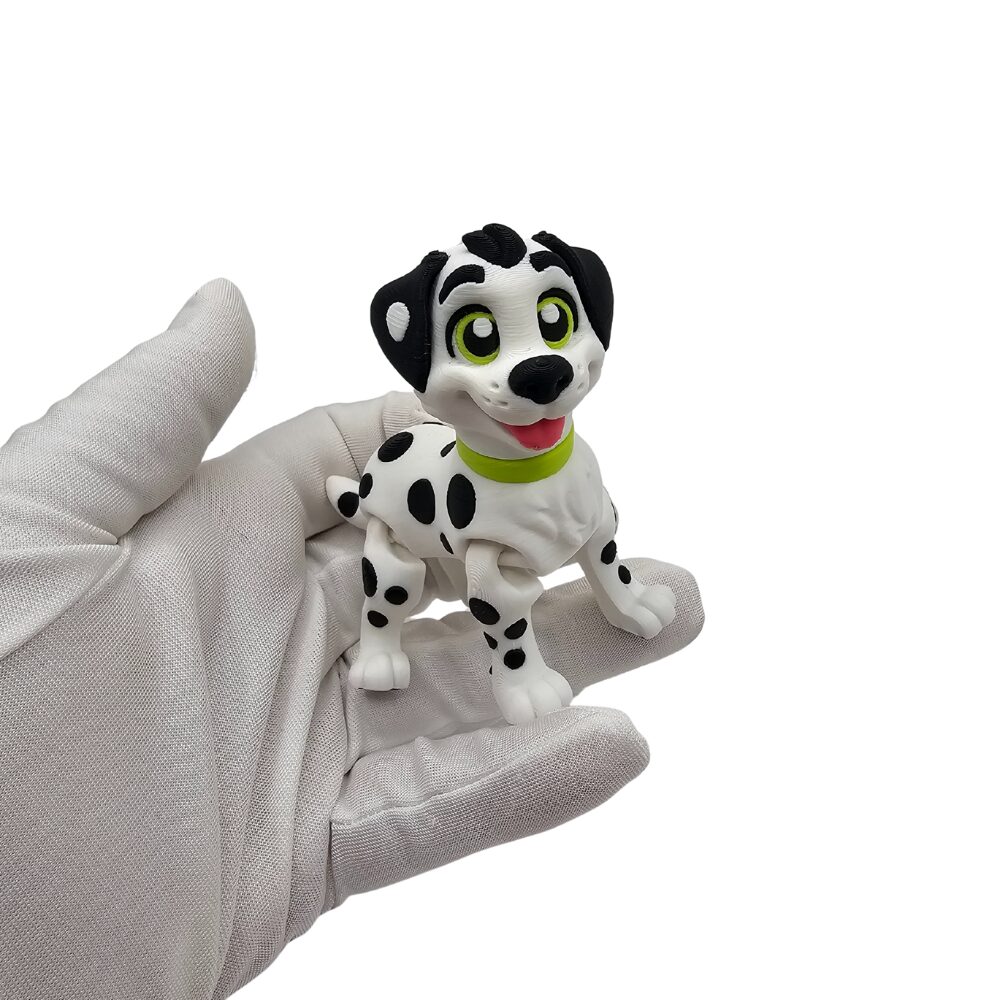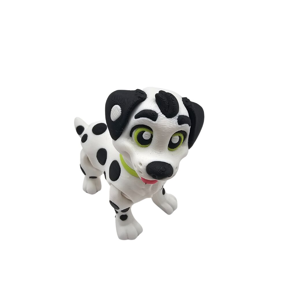 Dalmatyńczyk Piesek | Zwierzak to mała figurka przedstawiająca dalmatyńczyka. Ma białe ciało. Ma czarne cętki. Ma zieloną obrożę. Ma duże oczy. Jego sylwetka jest zaokrąglona.