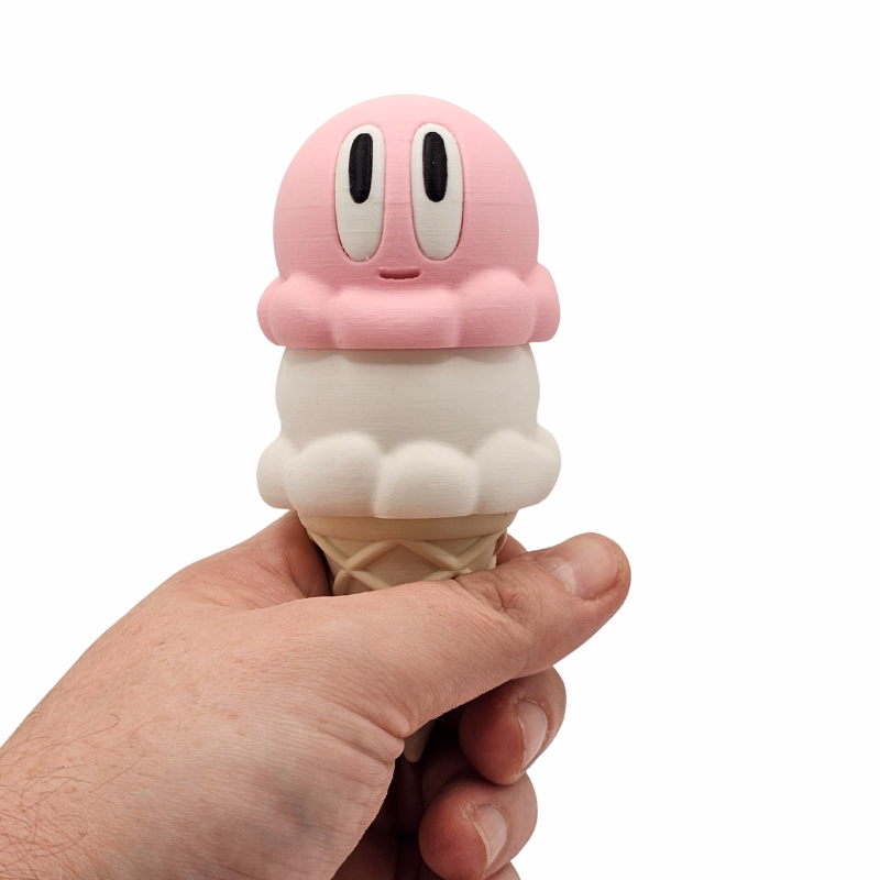 Tak, dzięki odwzorowanej fakturze i intensywnym barwom przypomina prawdziwą gałkę lodów.