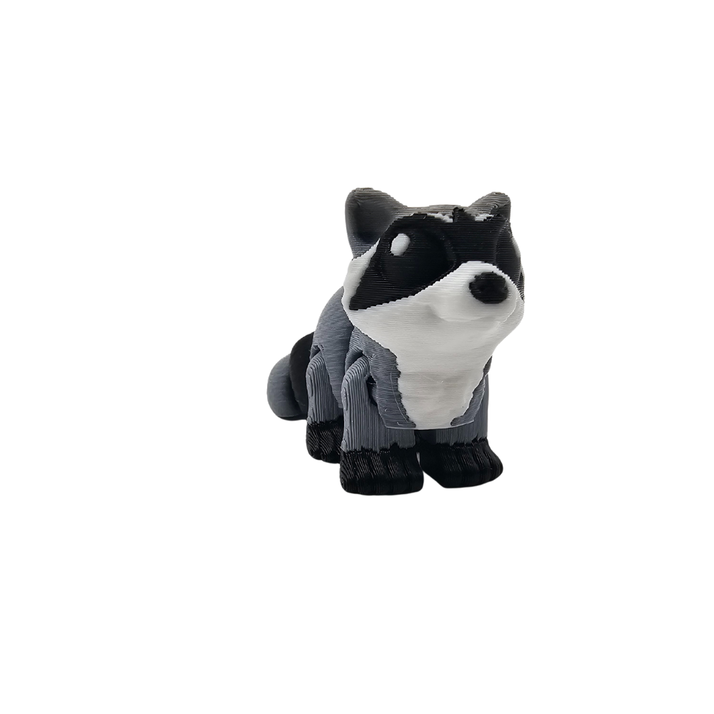 Mini Baby Szop | Minisek to mała figurka przedstawiająca szopa. Ma szaro-czarne ciało. Ma jasny pyszczek. Ma duże oczy. Jego sylwetka jest niska i zaokrąglona.