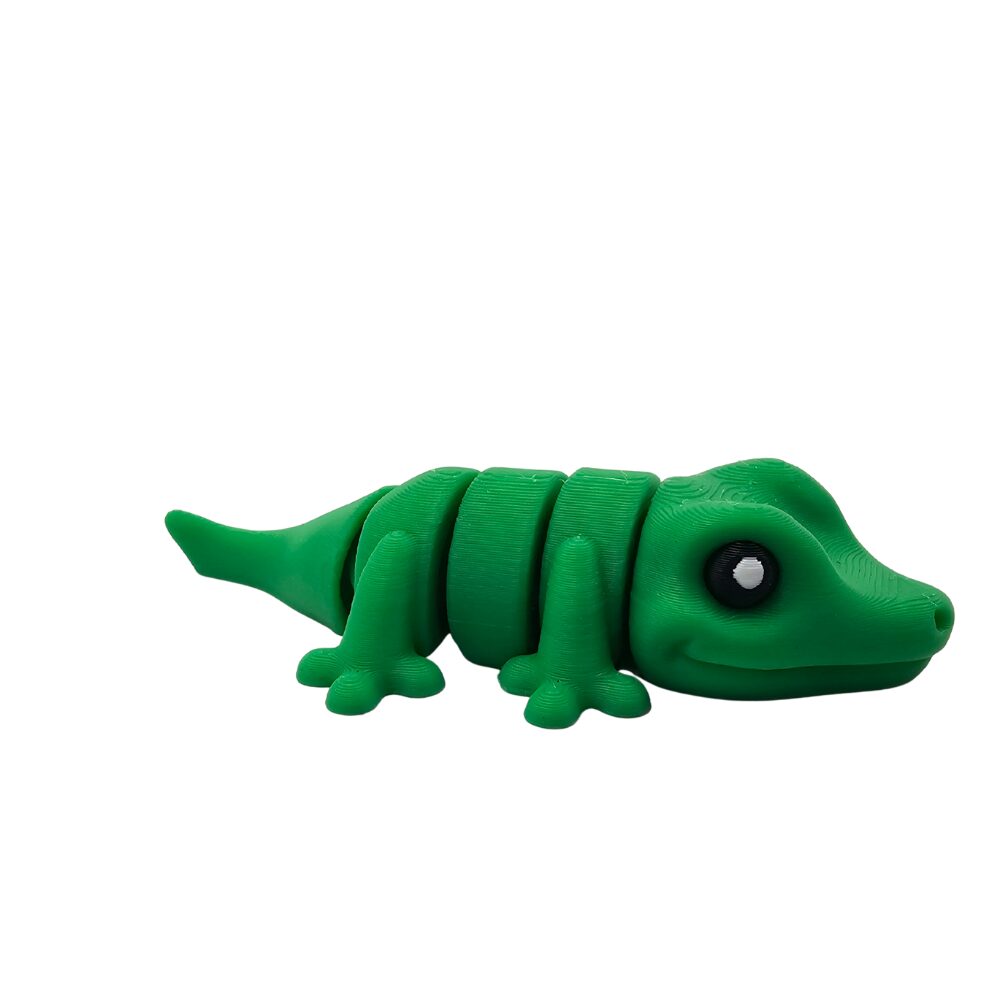 Mini Gekon | Minisek to mała figurka przedstawiająca uroczego, zielonego gekona. Ma smukłą sylwetkę, delikatnie uniesioną głowę i duże, czarne oczy. Całość wygląda jak postać z bajki.