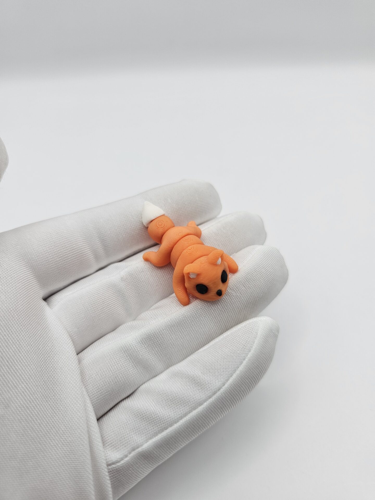 Delikatna, elastyczna forma pozwala poruszać głową, ogonem i łapkami, co umożliwia tworzenie różnych pozycji – od czujnej, po figlarną. Charakterystyczne rude futerko, biała krawędź ogona i błyszczące oczka dodają figurce wyjątkowego uroku.