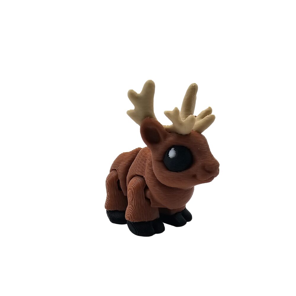 Mini Renifer | Minisek to mała figurka przedstawiająca renifera. Ma brązowe ciało. Ma jasne, krótkie rogi. Ma duże oczy. Jego sylwetka jest niska i zaokrąglona.