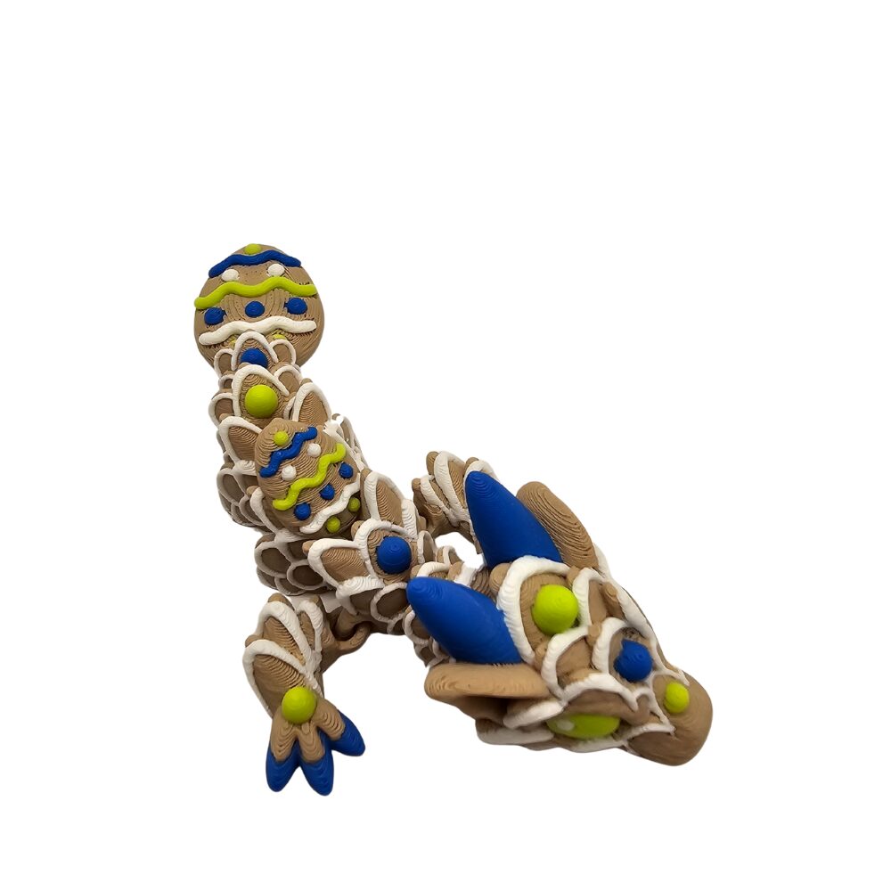 Smok ma żółto-niebieską kolorystykę. Ogon w kształcie jajka wielkanocnego jest wyraźnie zaznaczony. Skrzydła mają kolorowe wzory i detale. Całość przypomina dekorację wielkanocną.