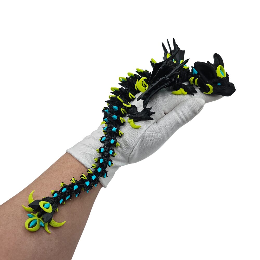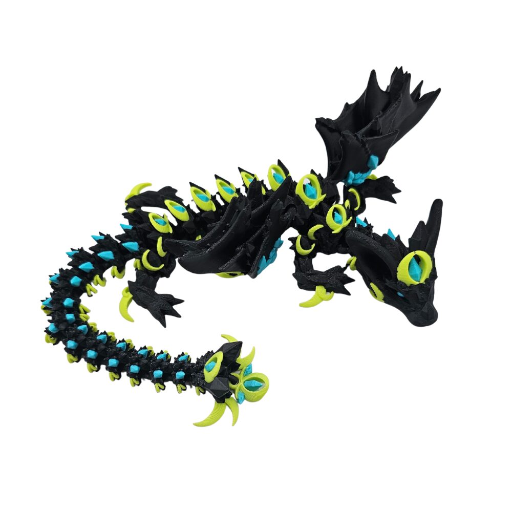 Figurka została wykonana z wysokiej jakości tworzywa o subtelnym połysku, przypominającym metaliczny obsydian. Rozłożyste skrzydła, pełne precyzyjnych detali, kontrastują z masywnym ciałem i wydłużonym ogonem, nadając modelowi niezwykłą dynamikę. Z kolei drobne akcenty błękitu i srebra podkreślają kontrast między ciemnością a światłem.