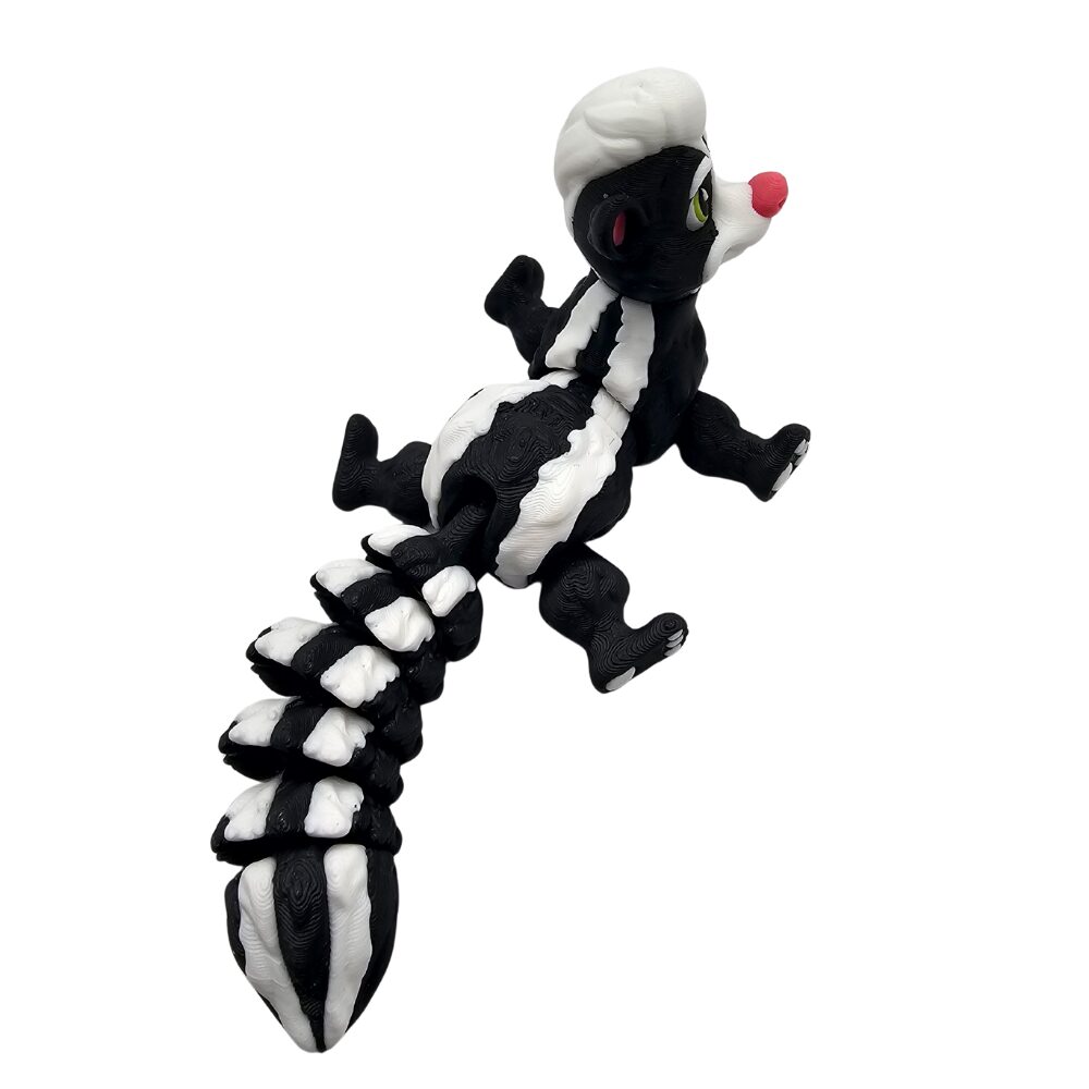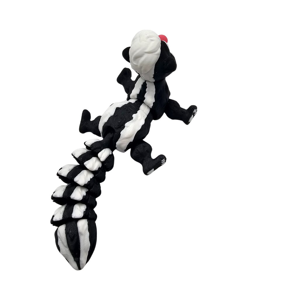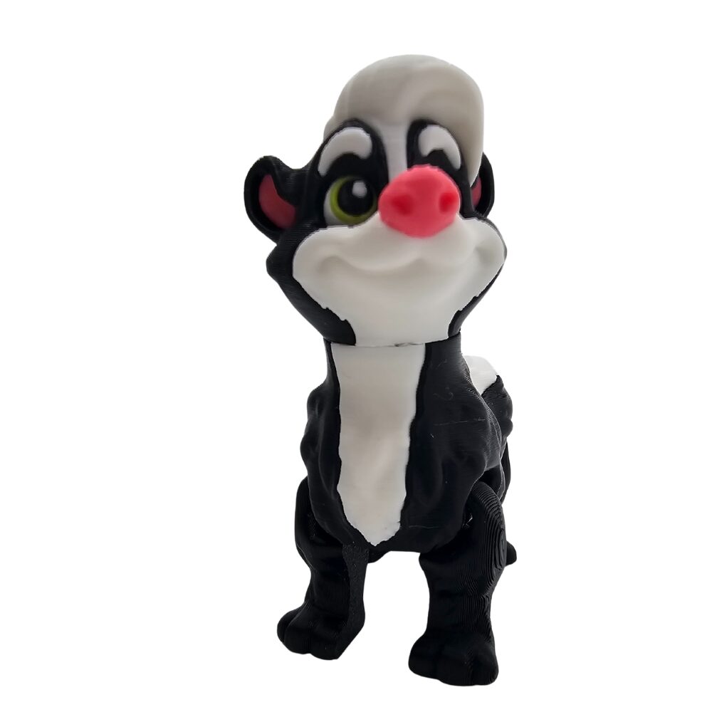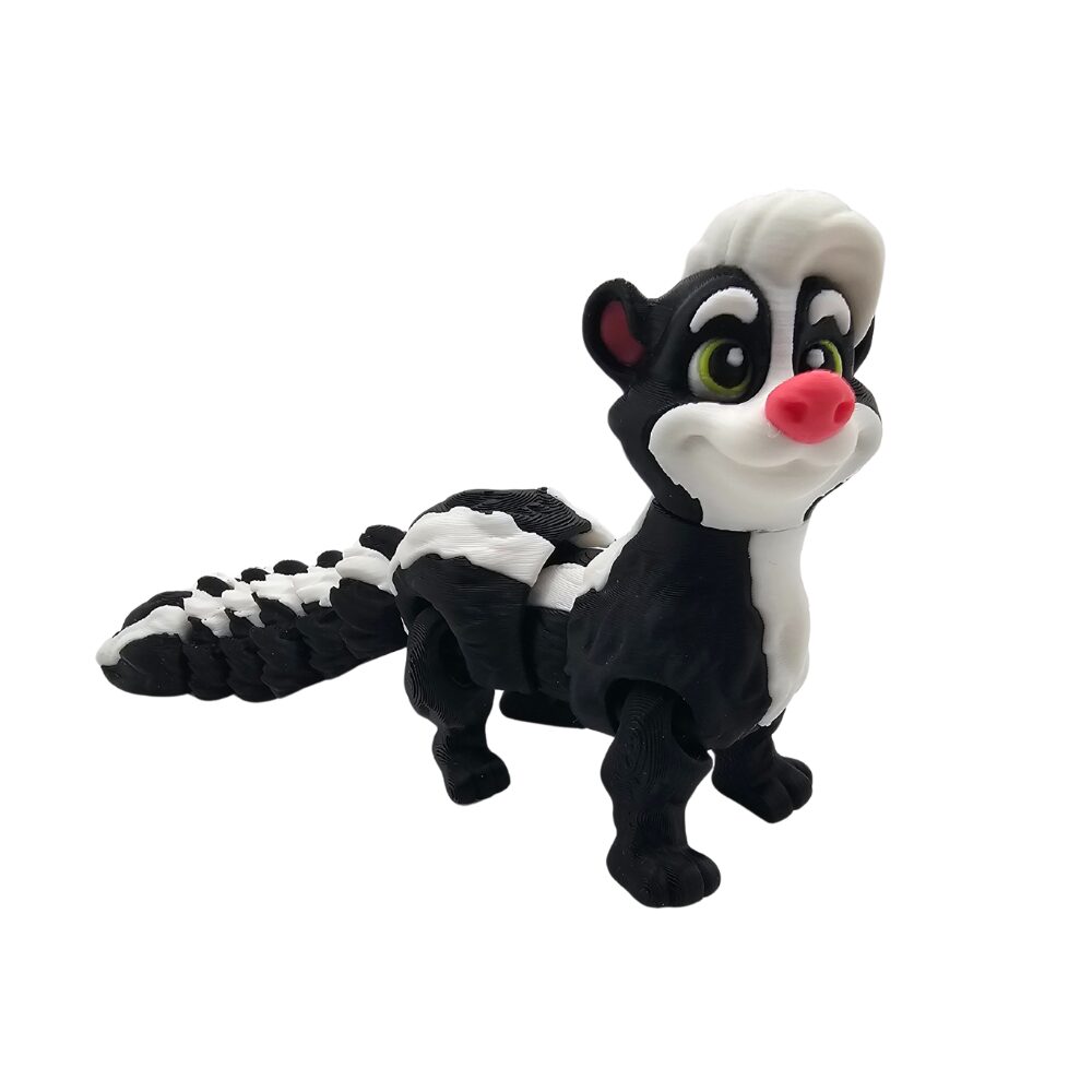 Pepe Le Swąd Skunks | Zwierzak przedstawia małego skunksa, który wygląda jak postać z zabawnej animacji. Ma czarne futerko z wyraźnymi białymi pasami. Ma czerwony nosek i duże, błyszczące oczy. Całość tworzy pogodny, komiczny wygląd.