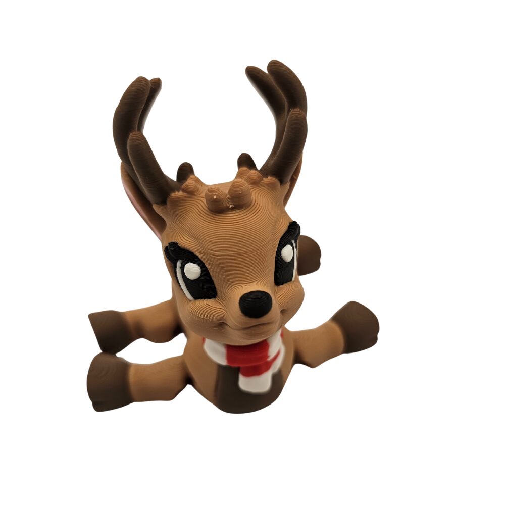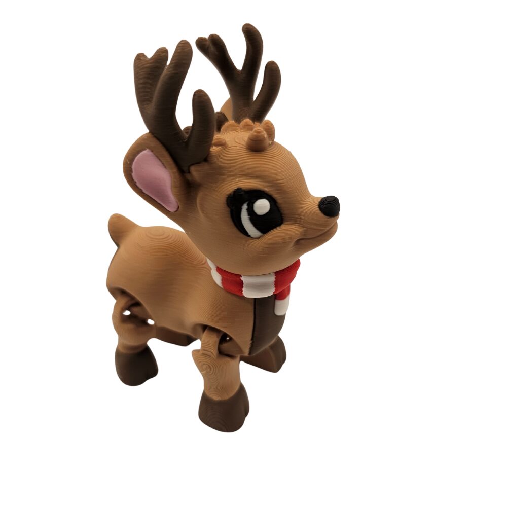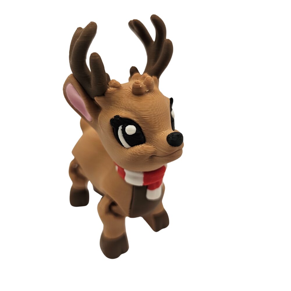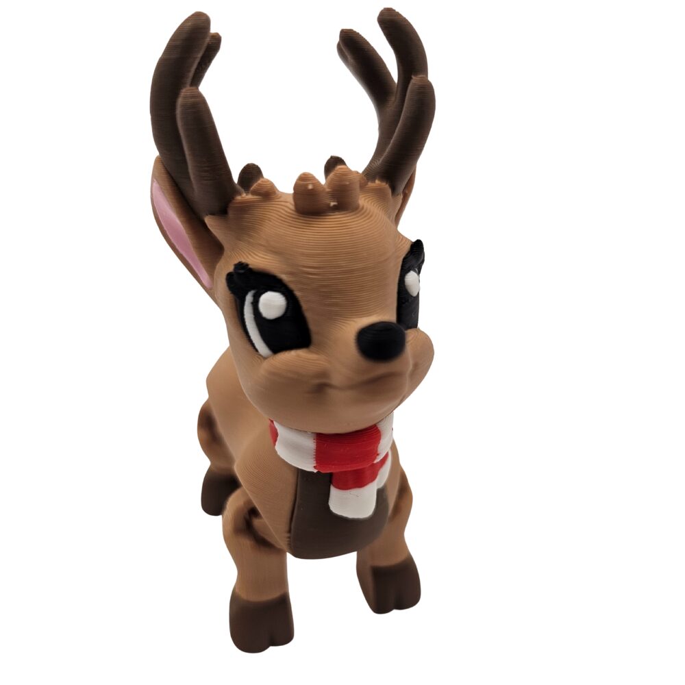 Pomimo cartoon’owego stylu figurka zachowuje realistyczne elementy: brązowe poroże z rozgałęzieniami, naturalne proporcje ciała, cztery nogi w stojącej pozycji oraz różowe wewnętrzne uszy. To połączenie uroku stylu chibi z anatomicznymi detalami sprawia, że renifer wygląda autentycznie.