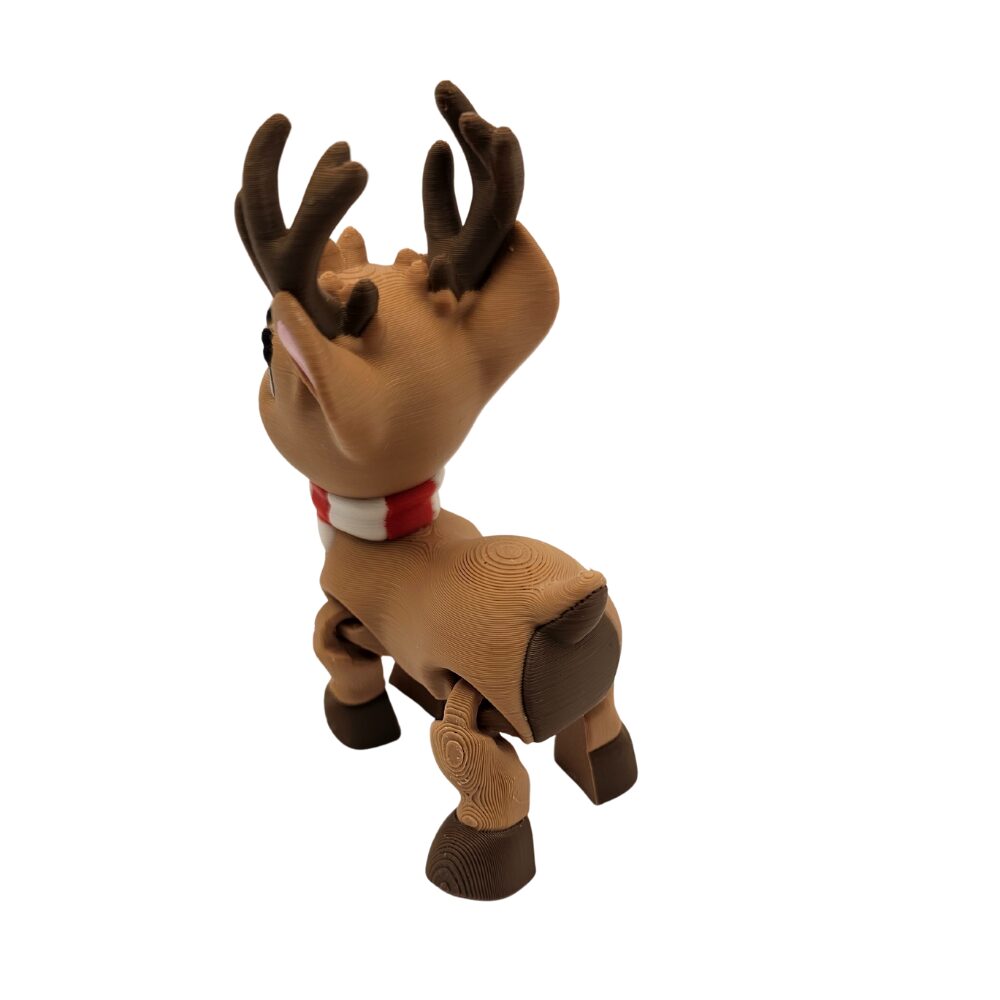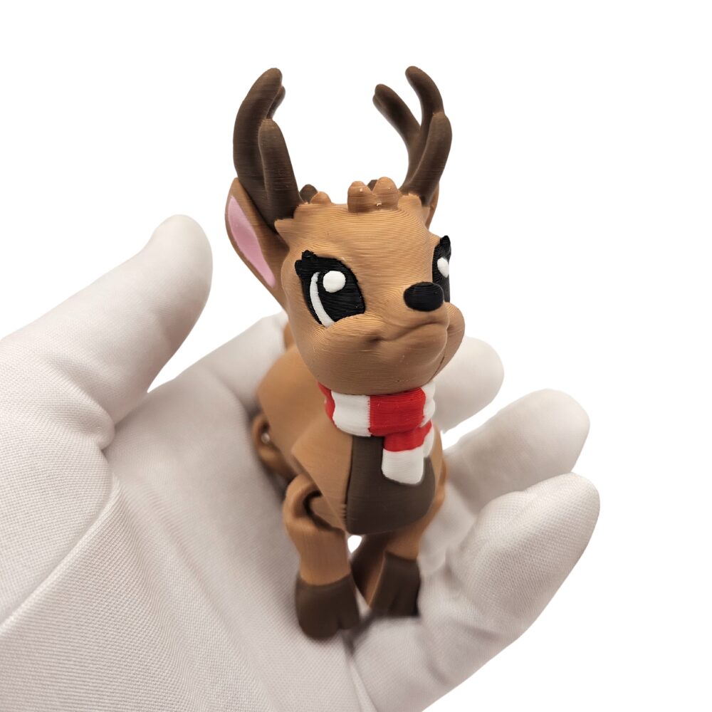 Dzięki zaawansowanej technologii druku 3D możliwe było odwzorowanie tekstury futra na beżowo-brązowym ciele renifera. Widoczne linie, detale na pyszczku, uszach i nogach dodają realizmu. Czarny nosek i kontrast kolorystyczny między ciałem a poroże podkreślają jakość wykonania.