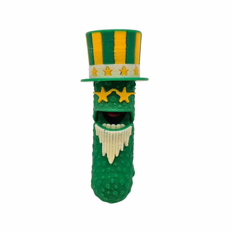 Ruchomy Pickl Uncle Sam | Figurka to nietuzinkowa figurka kolekcjonerska, która łączy w sobie humorystyczny motyw ogórka „pickla” z charakterystycznym wizerunkiem Uncle Sama. Symbolu amerykańskiego patriotyzmu. Dzięki ruchomym elementom figurka nabiera dynamiki i staje się jeszcze bardziej oryginalnym dodatkiem do kolekcji.