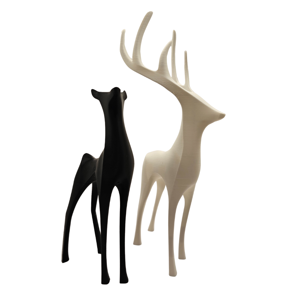 Zestaw dwóch figurek jeleniCzarny jeleń (18cm) i biały jeleń z porożem (26cm) 🦌