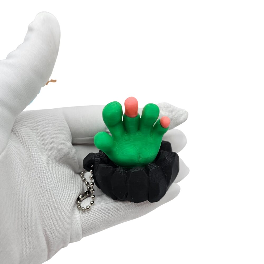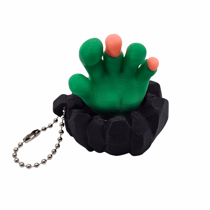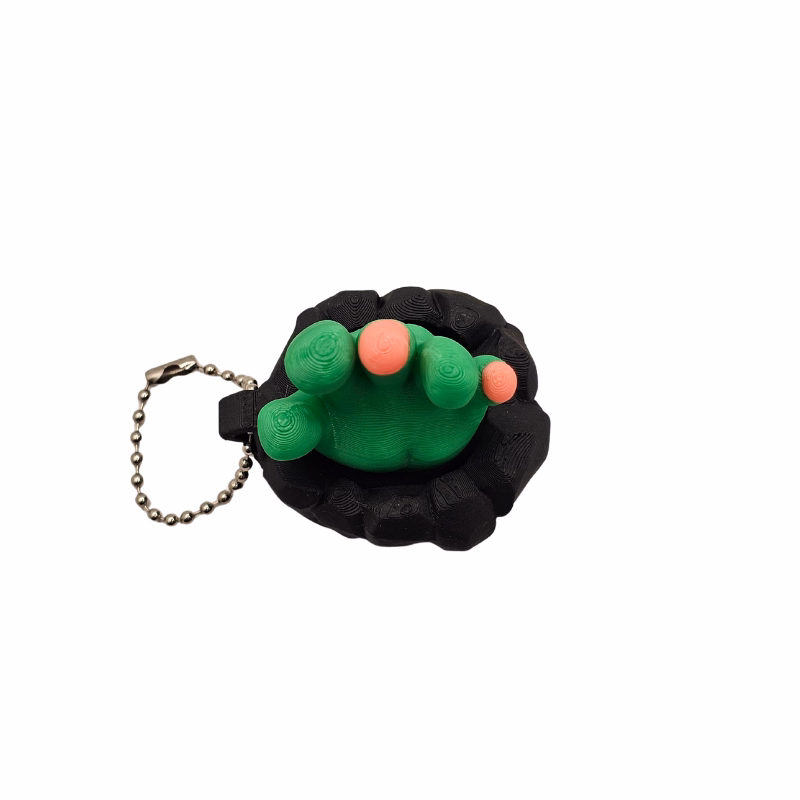 Zombie Hand | Clicker to klimatyczna figurka antystresowa w formie klikalnej zabawki, przedstawiająca rękę zombie wyłaniającą się z ziemi. Jej realistyczne detale – od kościstych palców po zniszczoną skórę – nadają całości mrocznego charakteru, który idealnie sprawdzi się jako gadżet w klimacie grozy.